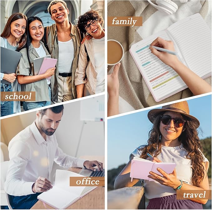 - A5 Hardcover Notebook: Features a high-quality matte PU leather cover with soft texture and stain-resistant durability. 160 pages of thick paper with rounded corner design to prevent curling. The 6-pack set is perfect for long-term backup and bulk purchases, effortlessly meeting both business and study needs.