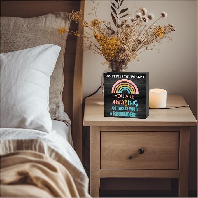 Encouraging Gifts for Women Teen Girls, Sometimes You Forget You're Awesome Wood Box Sign, Inspirational Gifts Birthday Graduation Congratulations Gifts for Daughter, Mom, Coworker Siste (Black, 6X6 Inch)
