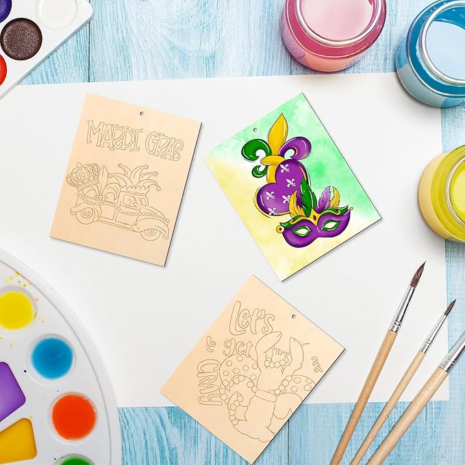 - Large Unique Mardi Gras Wooden Crafts To Paint - These unfinished woods come with vibrant elements laser carving line drafts, such as clown mask and lobster. Sufficient quantity, and suitable size for you to use on DIY craft projects, you can also share them with your friends.