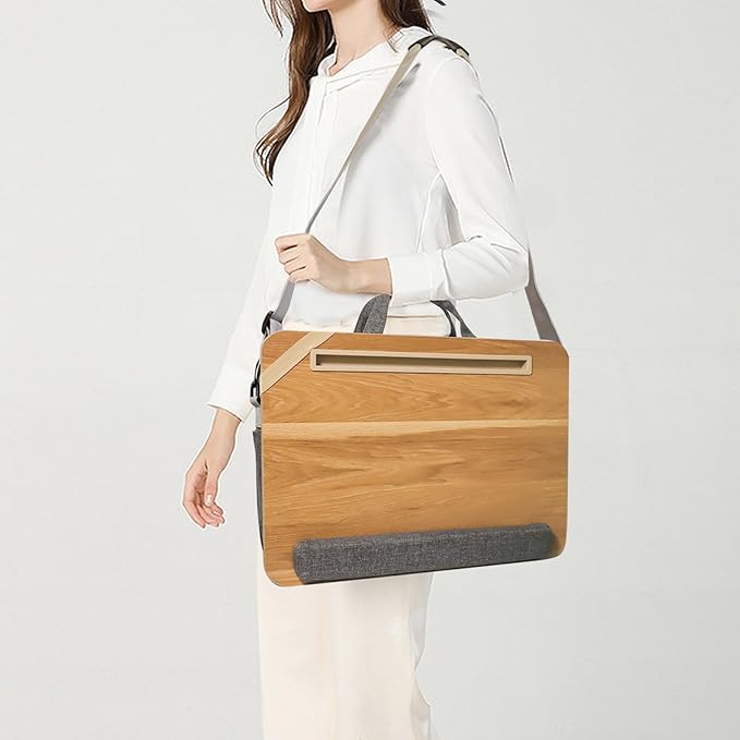 Lap Desk for Laptop Stand with Cushion, Adults with Storage Fits Up to 15.6in, Combines Features Bag and Pillow Table by Travel, Portable Workstation for Home College Office(Light Brown)
