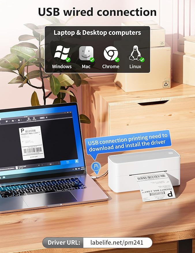 - [Print via USB Cable] - For PC, Windows, Mac OS, Chrome OS, and Linux systems. For Chrome OS, need to enter βLabelifeβ in the Chrome web store and add the extension to your Google Chrome. (PC printing needs to download the driver: labelife.net/pm241)