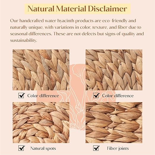 - Natural Material: Carefully handwoven from FSC-Certified water hyacinth fiber, this wicker trash basket adds an eco-friendly charm to your space, seamlessly blending sustainability with everyday functionality.