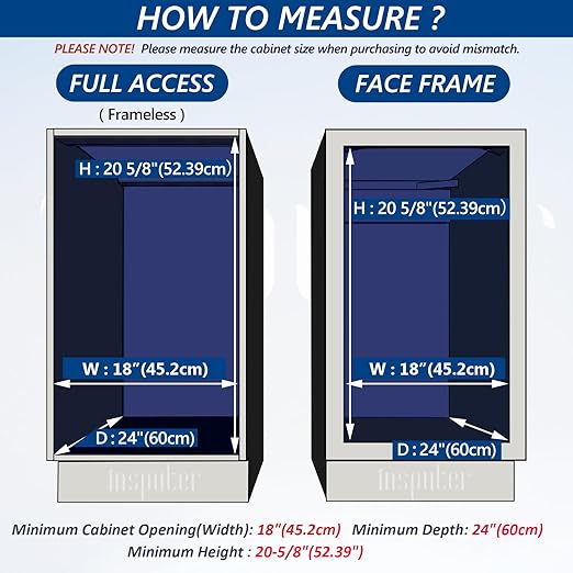 - Slide Out Trash Can Size: 14.6“ W x 22.04” D x 18.9“ H; Trash can: 16.1"W x 11.3"D x 17.3"H; Fits Minimum cabinet size: 18” W x 24 “D x 20.6” H. Please measure the cabinet dimensions before purchasing to avoid mismatch between the cabinet and the sliding trash can under cabinet. Pull out trash can for kitchen cabinets is easy to install with detailed instructions, installation video, easy to understand