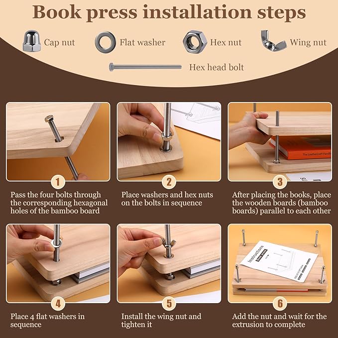 - Easy to Install and Use: The bookbinding kit for beginners provides a supporting instruction manual detailing the book press bookbinding installation steps to ensure that novices and experienced can easily learn it. The reasonable design allows us to turn the screw at will to adjust the distance, which is suitable for books of different thicknesses