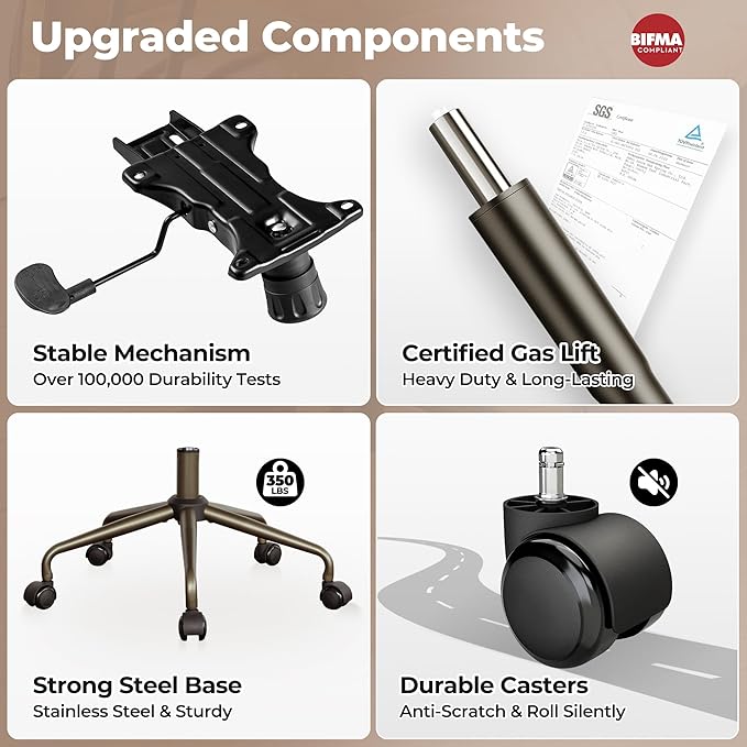 - Sturdy Construction: This padded task armchair features strong metal frame, curved backrest brackets that follow the curve of the human spine for stress relief, tested adjustment mechanisms and gaslift for stability even for tall and strong people, and high-quality 360° swivel rolling rotating casters avoid scratching the floor, can support up to 300 lbs. Whether you're working or relaxing, this modern chair offers a comfortable experience