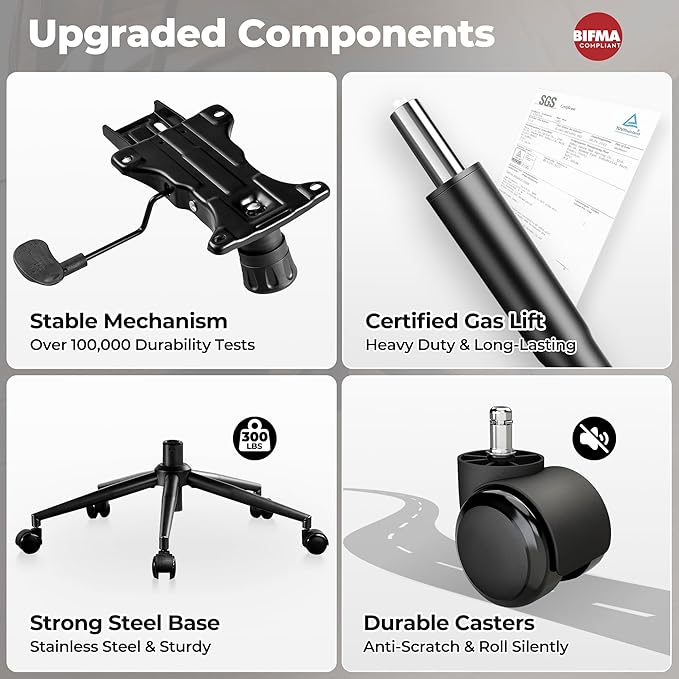 - Sturdy Construction: This padded task armchair features strong metal frame, curved backrest brackets that follow the curve of the human spine for stress relief, tested adjustment mechanisms and gaslift for stability even for tall and strong people, and high-quality 360° swivel rolling rotating casters avoid scratching the floor, can support up to 300 lbs. Whether you're working or relaxing, this modern chair offers a comfortable experience