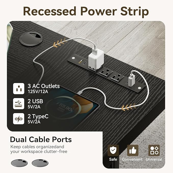 - 【Powerful Desk with Charging Ports】Upgrade your home office or study area with the Coleshome 71 inch large desk. Featuring 3 power outlets, 2 USB charging ports, and 2 Type-C charging ports, this office desk keeps your devices powered and ready. Say goodbye to tangled cords and limited outlets. Perfect for a modern desk, computer workstation, or executive desk.
