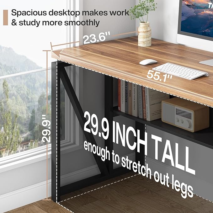 - 【Easily Hide to Keep Tidy】The storage rack with back under the table provides sufficient storage space for your books, power strips, storage boxes; while two drawers file cabinet keeps office supplies hide and neat