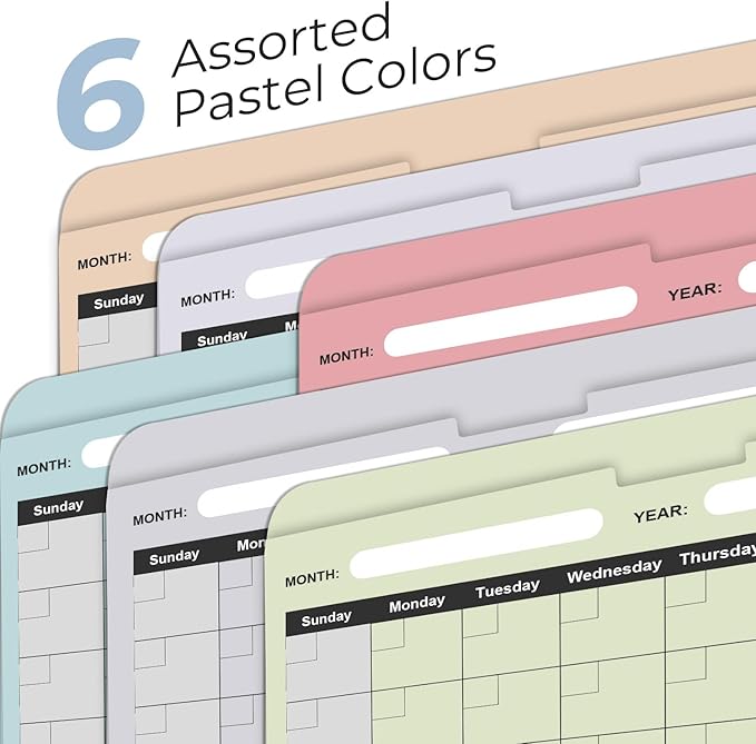 Y YOMA 6 Pack File Folder Jackets Letter Size Paper Pocket File Folder with Reinforced Straight-Cut Tab Pre-Printed Job Folders No Expansion Organizer for Office, Soft Colors, Calendar Design
