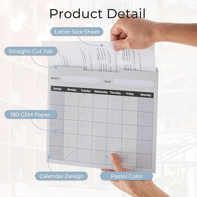 - Calendar Design - Each file jacket features a blank calendar on the surface, allowing you to fill in the months and days as needed, providing a visual aid to keep track of your daily schedule and avoid missing important information