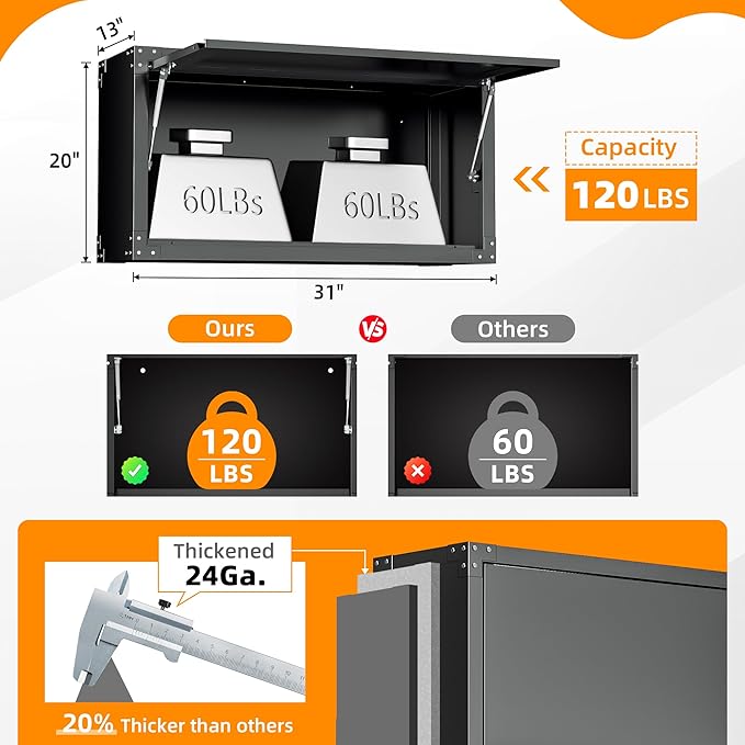 - 【High Strength Material】This metal wall cabinet is made of cold rolled steel, reinforcing the structure so that the wall cabinet can withstand more vertical pressure without warping. The steel cabinet can hold up to 200 pounds. The surface is coated with durable electrostatic powder coating and phosphatized for better adhesion and easy cleaning.