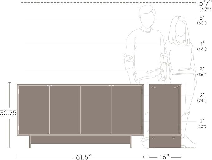 - ASSEMBLED DIMENSIONS & WEIGHT: Finnley Natural Oak Sideboard 16"D x 61.5"W x 30.75"H, Total weight- 115.00 lbs., All pieces arrive ready to assemble in 1 Box.