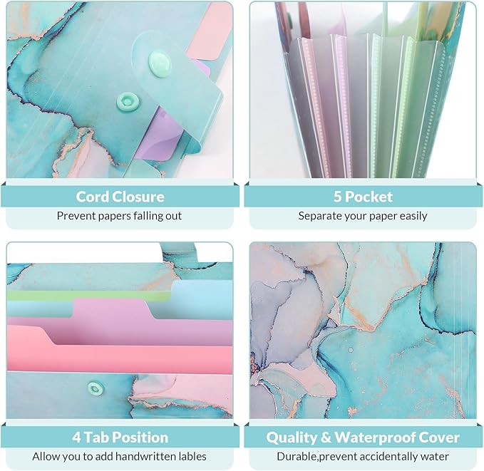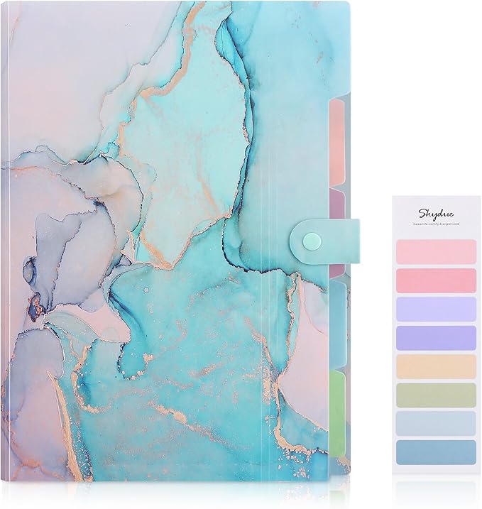 - Skydue file organizer with 5 pockets , 4 tab positions and 8 colored label stickers provide easy organization for multiple classes or projects.