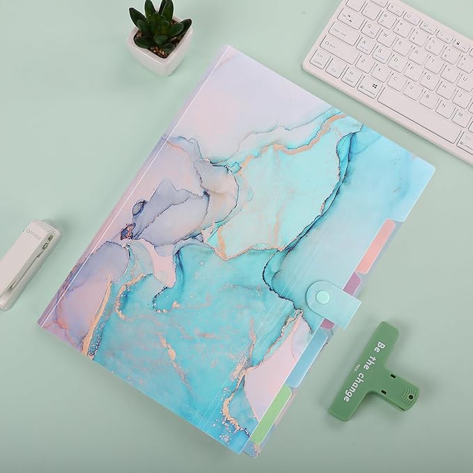 SKYDUE 5 Pockets Expanding File Folder, File Folders, Cute Accordion File Organizer with Labels (1 Pack, Lightblue)