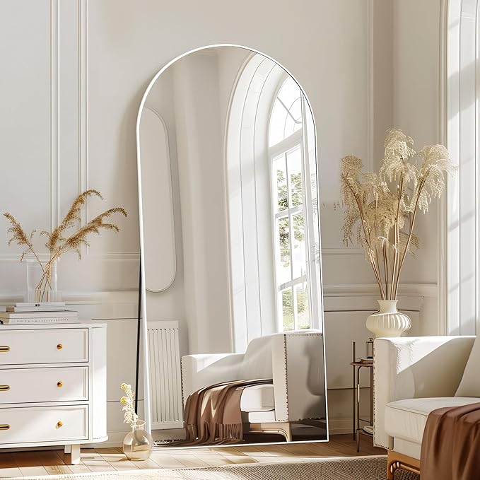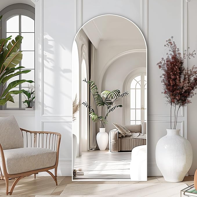 MELOMOIR 71"x32" Arched Large Mirror Full Length, Free Standing Leaning or Hanging, Thin Aluminum Frame, Tempered Glass, Suitable for Living Room Bedroom Cloakroom Hallway Home Gym, White