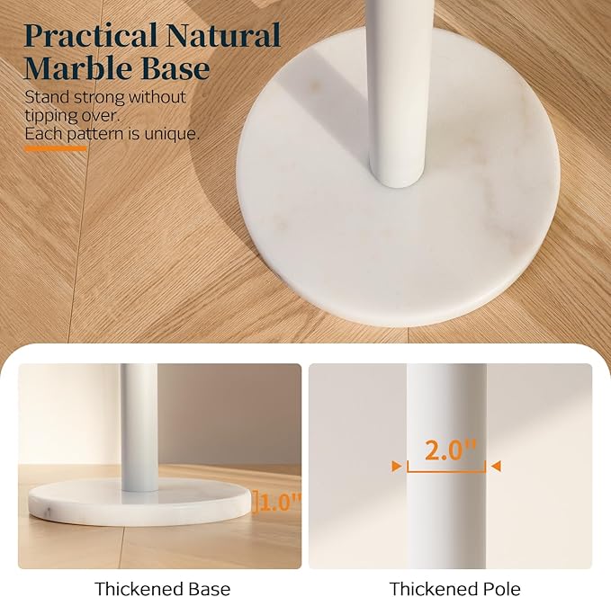 - 【Coat Stand with Marble Base】The standing coat rack base is crafted from 100% natural marble. Each base is hand-picked and has a one-of-a-kind natural vein. Beyond chic, the heavy-duty marble base is thickened and widened, confidently holding up to 150 lbs. The coat tree freestanding hangs even heavy winter coats with no wobble or tipping.