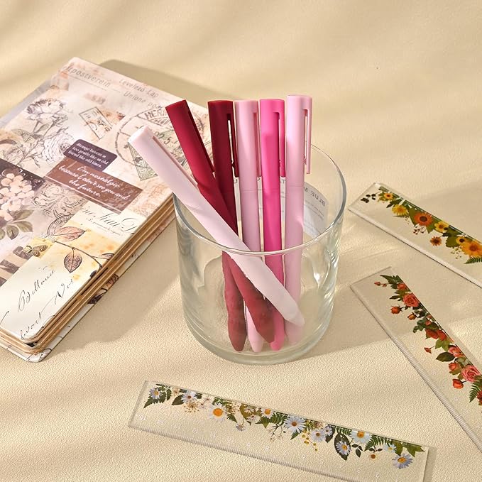 BAYTORY 8Pcs Colored Gel Pens, 0.5mm Fine Point Multicolored Ink Pen, Colorful Pens Smooth Writing for Note Taking and Marking Supplies (Red)