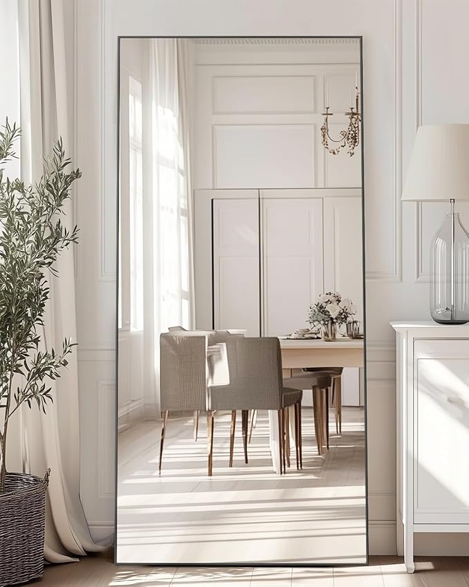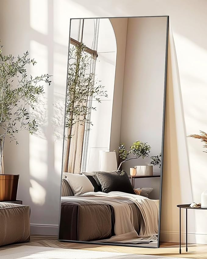 Antok Full Length Mirror, 71"x32" Floor Mirror, Floor Standing Freestanding Full Body Mirror with Stand for Bedroom, Hanging Mounted for Living Room Cloakroom, Black