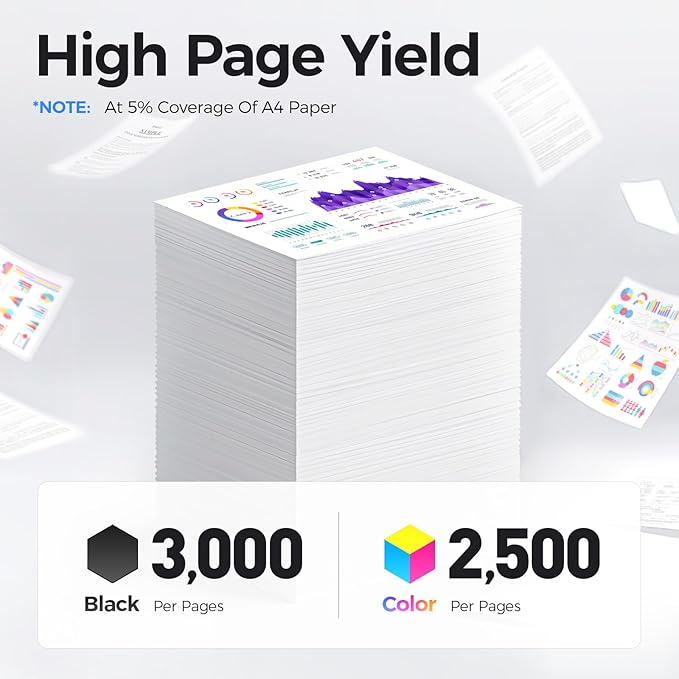 - High-Yield: up to 3,000 pages per C230 C235 Black and pages per 2,500 Color (Total 10,500 pages, 5% coverage).