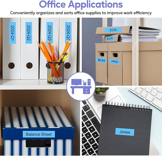- NineLeaf Compatible for Brother P-touch MK531 M-K531 M531 M-K531S Non-Laminated Label Tape, Color:Black on Blue, Length:8m(26.2ft), Width:12mm(1/2")
