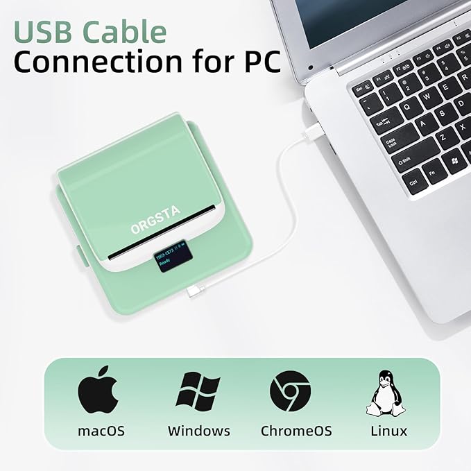 - Effortless Connectivity: ORGSTA T003 Bluetooth label maker is compatible with iOS, Android, and PC; Connect effortlessly to your phone via Bluetooth or to your computer using a USB cable; Label printer includes an easy-to-install driver compatible with Windows, Mac OS, Chrome OS and Linux; For iOS & Android phone, simply download the "4Barcode" app