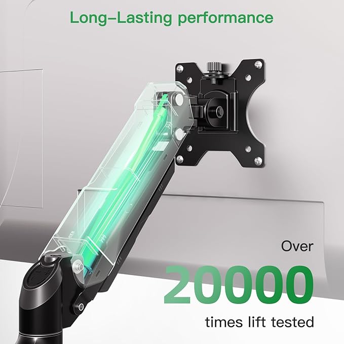 - Robust and Durable Construction: The gas spring arm of this pc monitor mount has been tested to withstand 20,000 motion cycles, ensuring long-lasting performance. The robust construction provides superior stability even during movement or adjustments. Comes with clearly labeled parts and clear instructions, you can choose clamp mounting (suitable for desks from 0.39 to 3.15" thick) or grommet mounting (suitable for desks from 0.39 to 1.97" thick).
