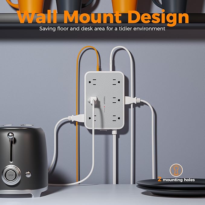 - 1800J Surge Protection: TESSAN power strip with surge protection protects your devices, like computers and other electrical appliances, from power surges and spikes; USB power strip with overload protection switch providing a secure charging environment
