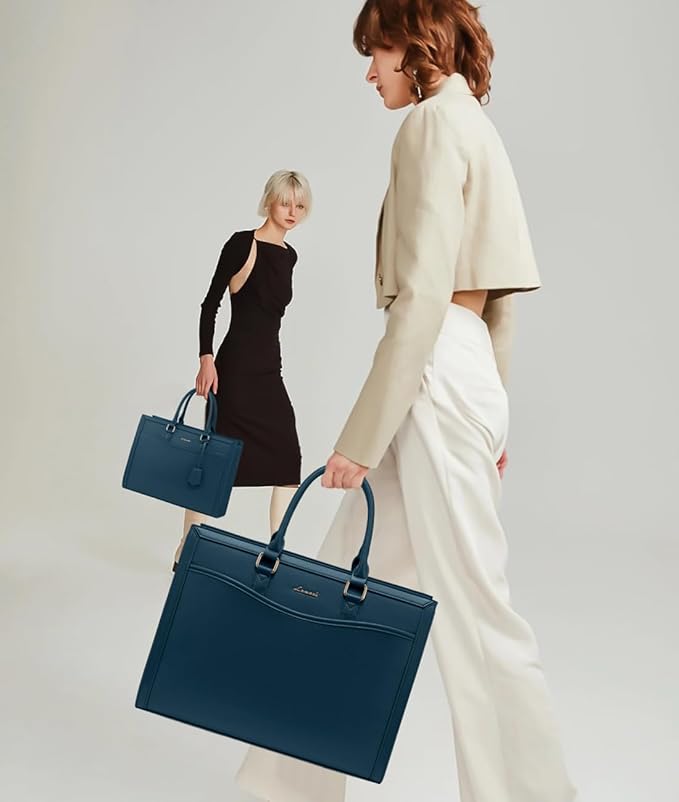 - 【Perfect Size Work Bag】The dimension of the work bag for women is 16.5" x 5.9" x 12.5"(L*W*H). Handle drop: 6.3''. Small Clutch:8" x 5" Net weight: 2.31 lbs. Adjustable shoulder strap is 27~48 inches. Suitable for most 13"/14"/15"/15.6" laptops, and it is large enough to make your daily stuff well organized.
