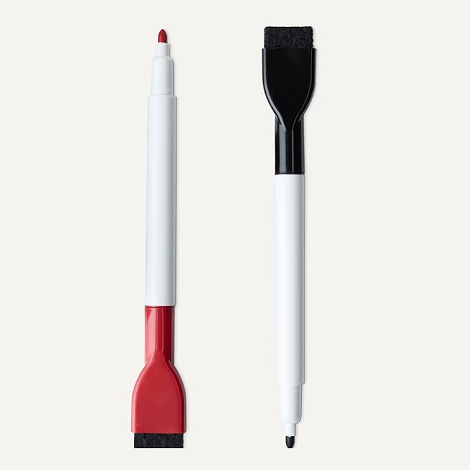 - Magnetic dry erase board sheet for refrigerators; includes markers and eraser