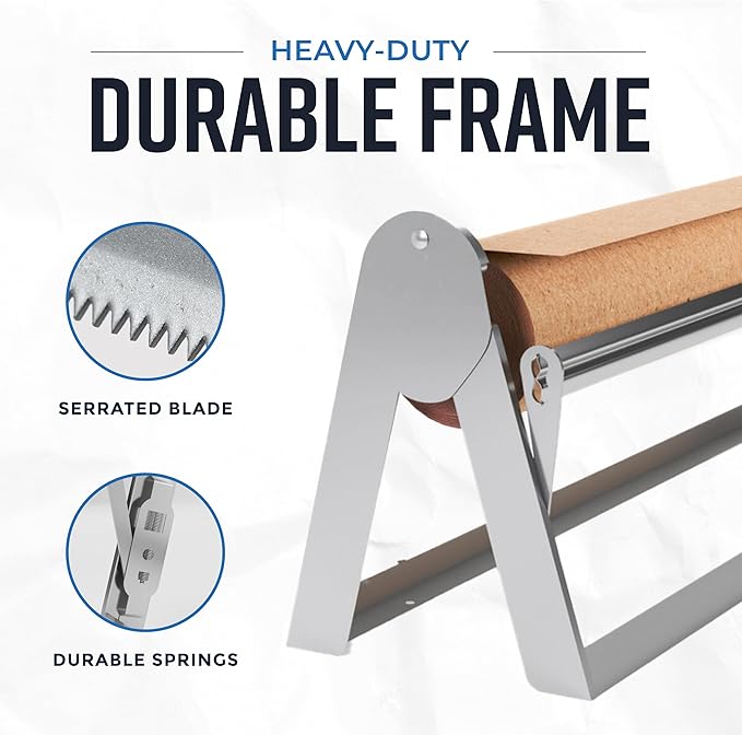 - Heavy-Duty Steel Construction: Crafted from sturdy, all-steel materials, our butcher paper roll holder and cutter is built to last and handle everyday use. ideal for kitchens, craft rooms, and wrapping stations. The sharp and durable blade ensures smooth, clean cuts every time.