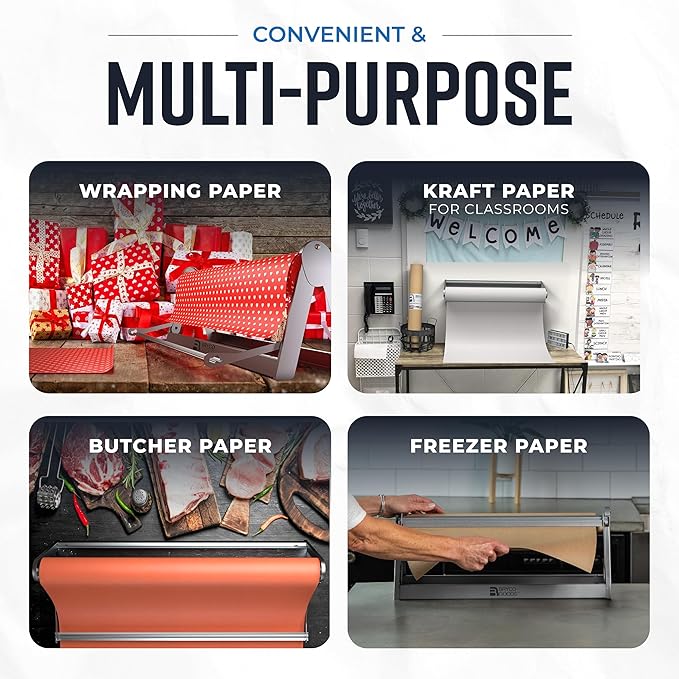 - Fits Most Standard Rolls: Designed to fit butcher paper, craft paper, or gift wrap rolls up to 36” wide and 9” in diameter (equivalent to a 1000ft roll on a 1" core). Perfect for home, commercial, or classroom use.