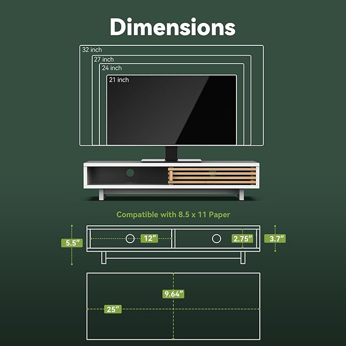- 【Ergonomic Space Saver】Elevates screen to eye level (3.7" or 5.5" height). Multi function: monitor stand, laptop, printer, speaker & desk organizer in one