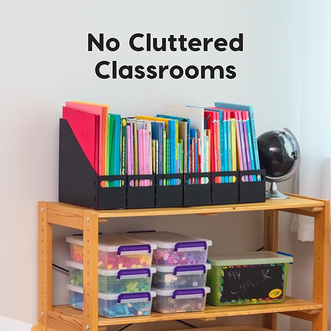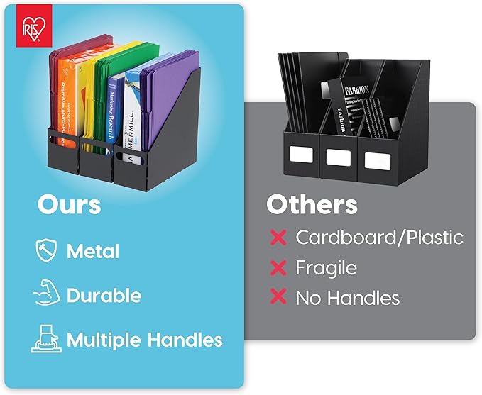 IRIS USA Metal Magazine File Holders, 6 Pack, for Letter/Legal File, Durable Vertical Desktop File Paper Organizer, File Storage Box Stand Rack for Document Notebook Binder Home Work Office, Black