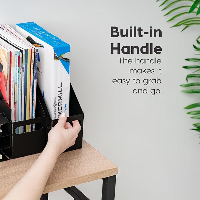 - VERTICAL DESIGN: The sleek vertical design allows for easy, upright storage of files, magazine, and documents, maximizing desk space and providing a tidy solution for home, office, or study areas.