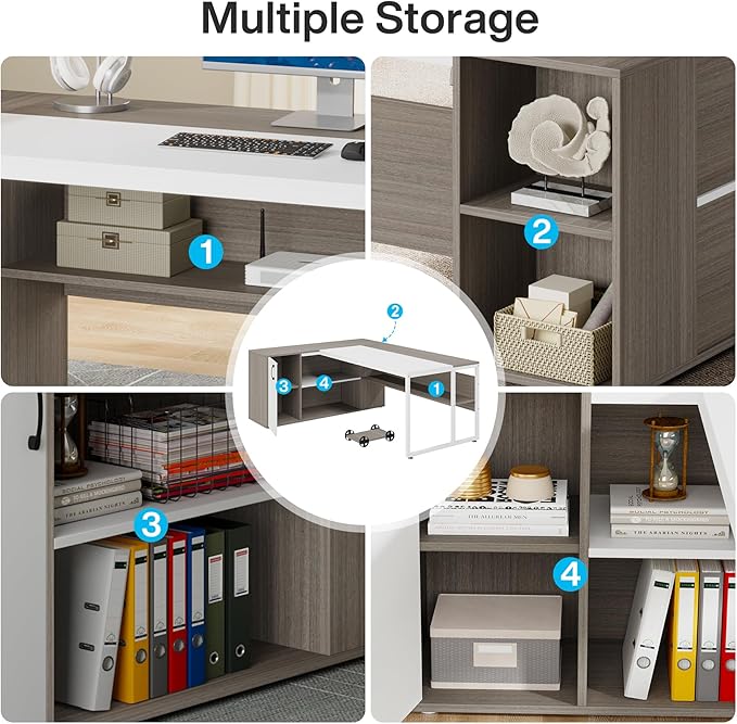 - Easy Assemble: Coming with quite clear instructions, numbered parts and all necessary tools, this large office desk with storage could be easily assembled. We provide friendly customer service and we will give you a satisfactory answer if you have any questions