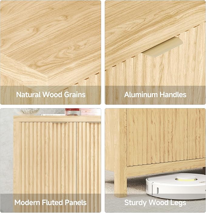 - Elegant Fluted Style: This buffet cabinet with storage brings a touch of modern elegance to your home with its artistic fluted design. The fluted design on the doors adds depth and texture, making it a functional and stylish addition to the home