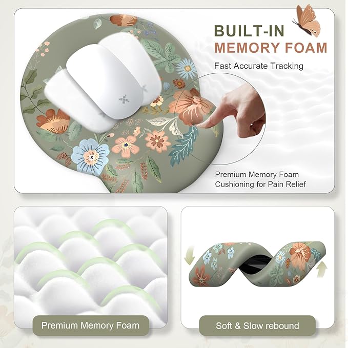 - Ergonomic Design: The mouse pad with gel wrist rest conforms to the natural curve of your wrist, reducing pressure and fatigue. The memory foam keyboard wrist rest offers soft, adaptive support, keep your wrists in a neutral position while typing