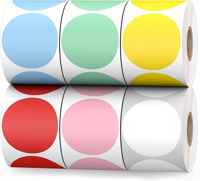 6 Rolls 2" Color Circle Direct Thermal Stickers Labels, Self-Adhesive Round Thermal Labels Printer Stickers for Business, DIY, Code, Name Tag, Envelope Seal