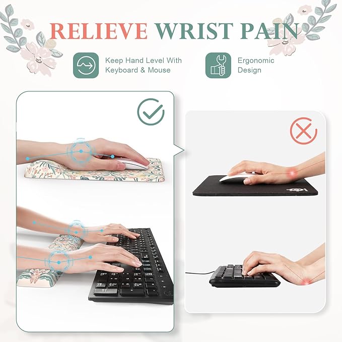 - Ergonomic Upgraded Design: The wrist support mouse pad fits the wrist perfectly, the keyboard wrist rest and mouse wrist rest can provide a good touch and effective support for your wrist