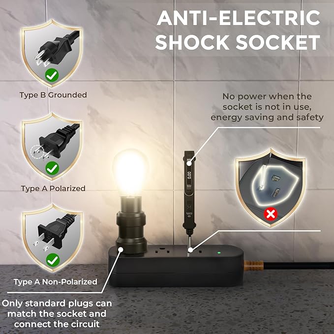 - Safety Structural Design:Our patented socket has been designed with safety as a top priority. It is compatible with standard American plugs and is equipped with a safety lock where the plug needs to be fully inserted to energise. This limits access to unintended items and helps prevent potential electrocution.