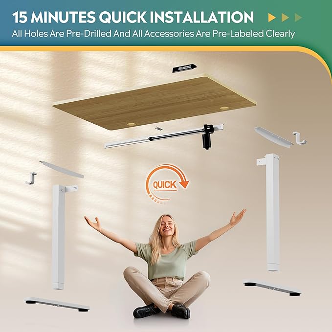 - 【Tool-Lite Assembly】Your Adjustable Desk Ready in 15 Min! Step-by-step video guide, pre-drilled screw holes, and L-shaped installation tools, making setup quick and simple. 24/7 US-based support backs every purchase.