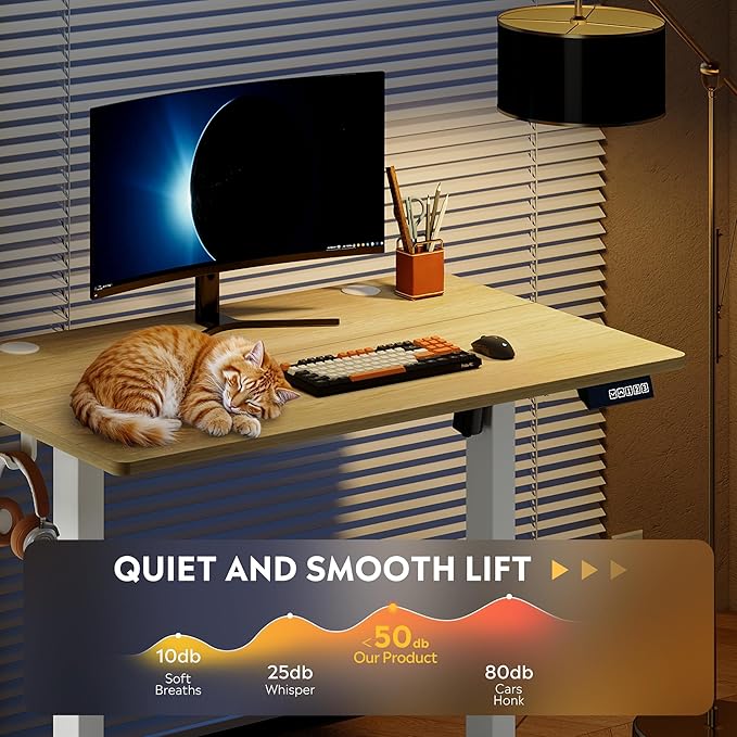 - 【Smooth Height Adjustments】Tri-motor system delivers whisper-quiet (<50dB) height transitions (28.35"-46.45") in seconds, eliminating manual adjustments and prevent desktop tilting. Standing desk adjustable height perfected for ergonomic shifts, ensuring buttery-smooth operation whether sitting or standing.