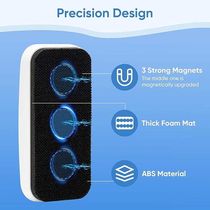 - Powerful magnets:magnetic white board dry eraser built-in three powerful magnets firmly attach to any magnetic whiteboard, chalkboard or metal surface, keeping the eraser within reach.