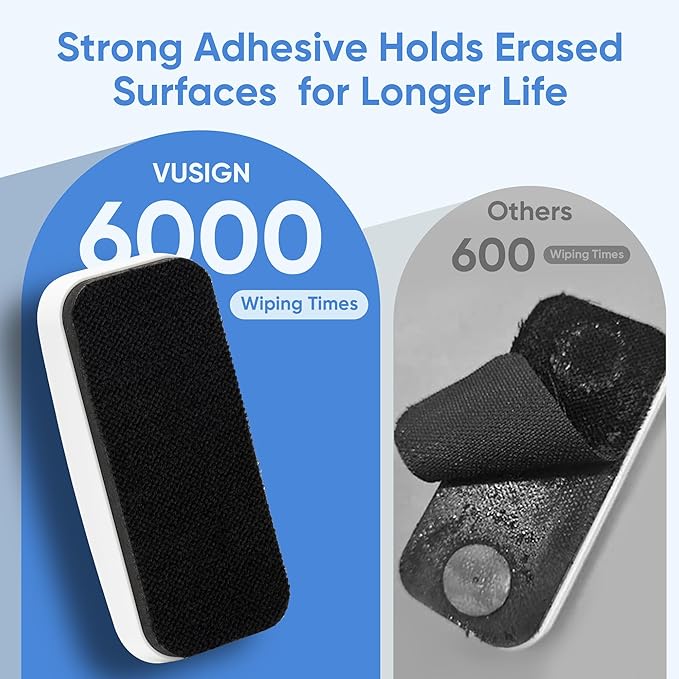 - Efficient cleaning: dry erase eraser can easily erases dry-erase ink without leaving streaks or residue, ensuring whiteboards stay clean and tidy for optimal presentation and readability.