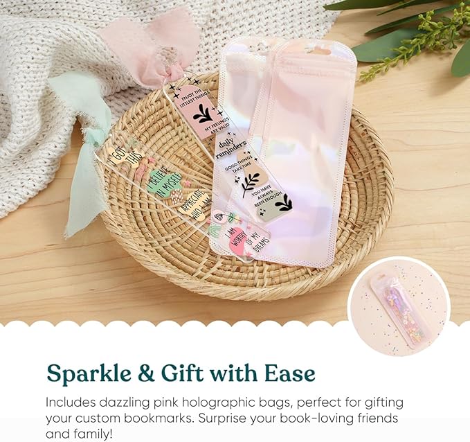 - 【65PCS Acrylic Bookmarks Kits】:You will receive 15 pcs 3mm thick blank acrylic bookmarks, 20 pcs Daily Affirmation theme uv dtf sticker, 15 ribbons and 15 pcs holographic bags. Sufficient quantity will meet your needs of personal use or presenting, and you can share them with your family or friends.