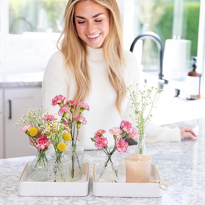 - π Create Order with Elegance: Elevate your home with our versatile, water-resistant vanity tray, thoughtfully designed for everyday organization and timeless style. Perfect as a perfume tray for women, decorative vanity trays for bedroom dresser, or a stylish valet tray organizer and EDC tray for daily essentials. Use this multifunctional piece as a bathroom countertop organizer, small coffee table tray, or functional key dish bowl for your entryway table. This nightstand decor not only keeps essentials beautifully in place but also adds a refined touch to any room. For maximum convenience, choose a 2-pack of nightstand organizers to style both sides of your bed with ease and elegance.