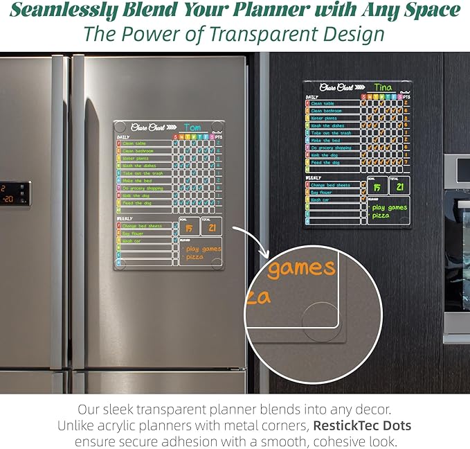 Clear Non-Magnetic Dry Erase Chore Chart - 11.5"x8.5" Behavior Responsibility Chore Board for Kids, Teenagers and Adults - Sticks to Wall, Glass, Door, Any Smooth Surfaces