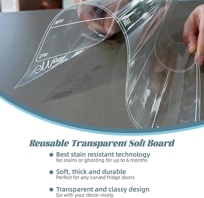 Clear Non-Magnetic Meal Planner Set for Fridge - Dry Erase Transparent Menu and List Board - Sticks to Wall, Glass, Door, Any Smooth Surfaces