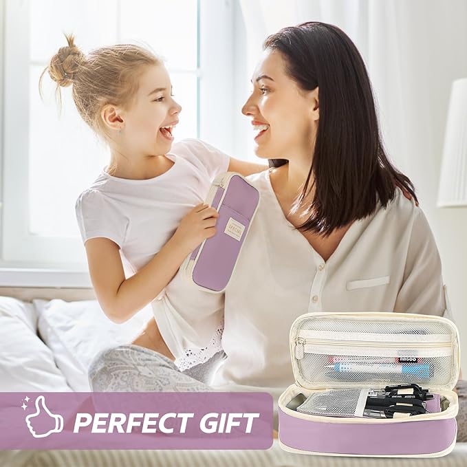 Pencil Case, Large Capacity Aesthetic Pencil Cases with Durable Zipper, Big Stationery Pencil Pouch for Women & Men, Adults Portable Storage Organizer Bag for College, office, Travel (Purple)