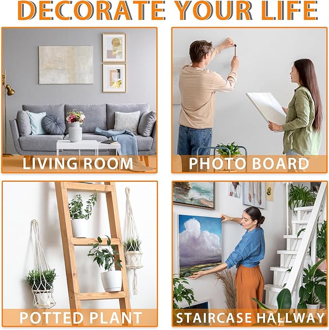 - TRACELESS THUMBTACKS: The holes made by the Hang pictures on wall without nails are very small and almost leave no marks, which can avoid damaging the walls. The picture hangers enable you to create beautiful displays without leaving a lasting impact. Please consider the hardness of the wall before purchasing. Our wall hooks for hanging may not be suitable for very hard or fragile materials, so be sure to evaluate the wall type in your home for the best results.